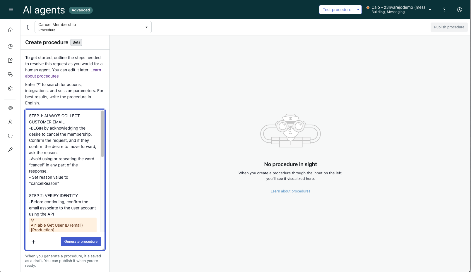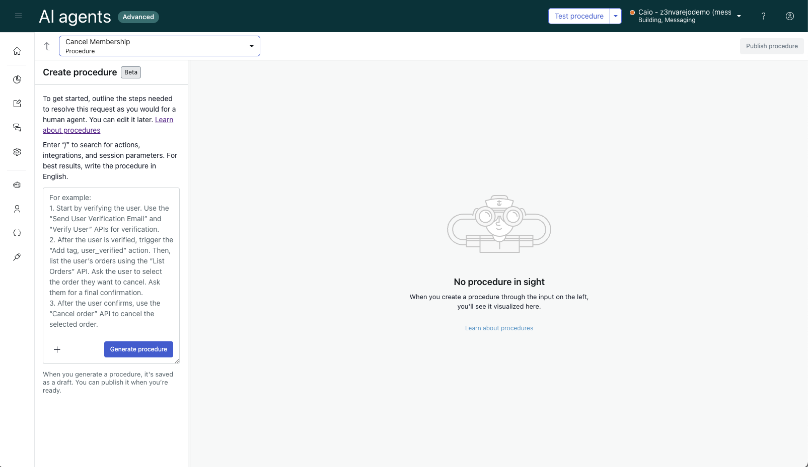 Con el borrador en mano, vamos a llevarlo al entorno del Zendesk AI Agent.