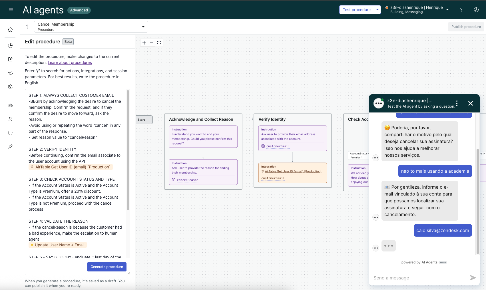 Use o modo de teste do Agente de IA para simular interações com o cliente. Verifique se o agente segue o fluxo corretamente, entende as variáveis e responde com o tom ideal.